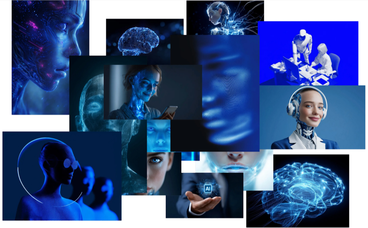 We have paid particular attention to the frequent presence of the color blue in these images.9 M. Although this type of representation has somewhat declined in AI-generated images, especially since the launch of ChatGPT10, it continues to play an important role and deserves further study. One only needs to ask ChatGPT — or any other multimodal AI — to generate an image with a simple prompt such as “Show me artificial intelligence.” The result is almost always the same: an image that follows all the conventions of stock imagery — the color blue, printed circuits, an androgynous profile, 0s and 1s. As we have argued elsewhere11, these images exert an anesthetizing effect on debates about AI and its impacts.