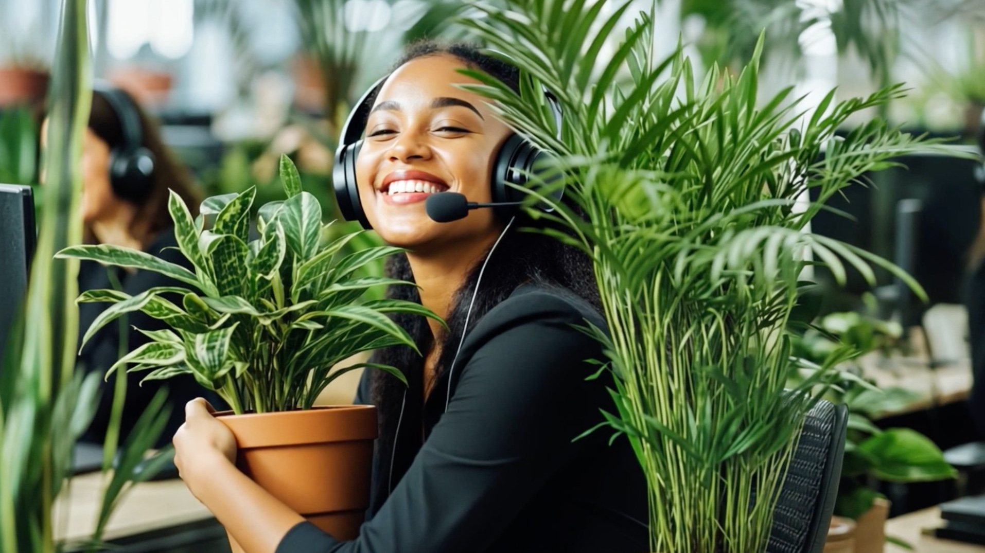 Call center operators work in environments as green as possible, until they fall in love with the proliferating plants.